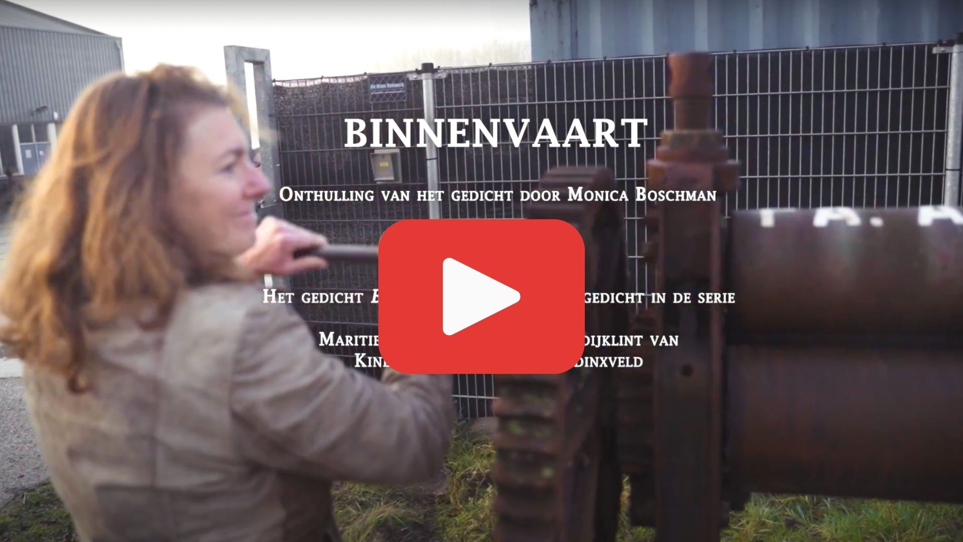Het gedicht genaamd ‘Binnenvaart’ is geplaatst langs de dijk ter hoogte van Constructiebedrijf Jonker aan de West-Kinderdijk. Deze plek is niet toevallig gekozen. Fa. A. Jonker Constructiebedrijf is in 1812 namelijk begonnen als scheepswerf en verricht nog steeds, inmiddels onder leiding van Ronald Jonker (ook te zien op de video van de onthulling), constructiewerkzaamheden aan schepen.